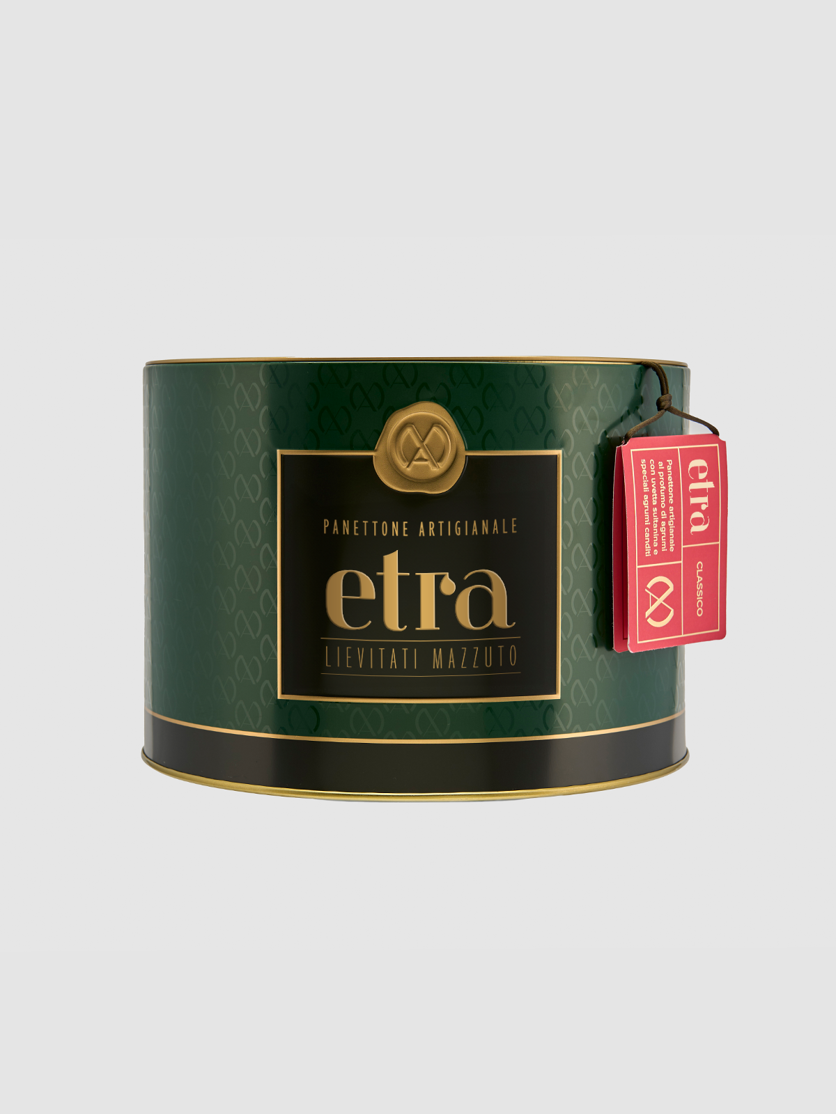 Soffice panettone artigianale al profumo di arancia, miele e vaniglia arricchito con una preziosa selezione di agrumi canditi e golosi chicchi di uvetta sultanina, perfetti per esaltare il tradizionale sapore di festa.